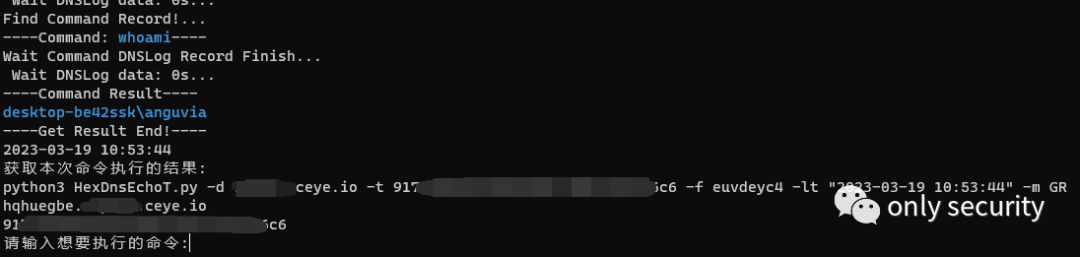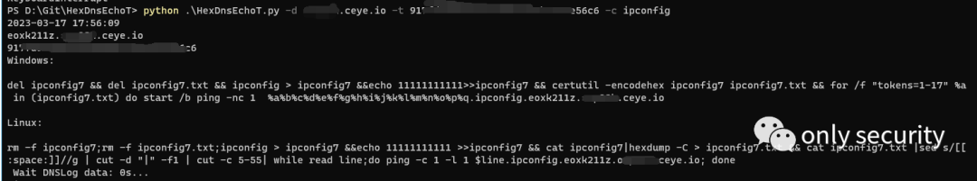 python3 HexDnsEchoT.py -d YourCeye.ceye.io -t ceyeToken