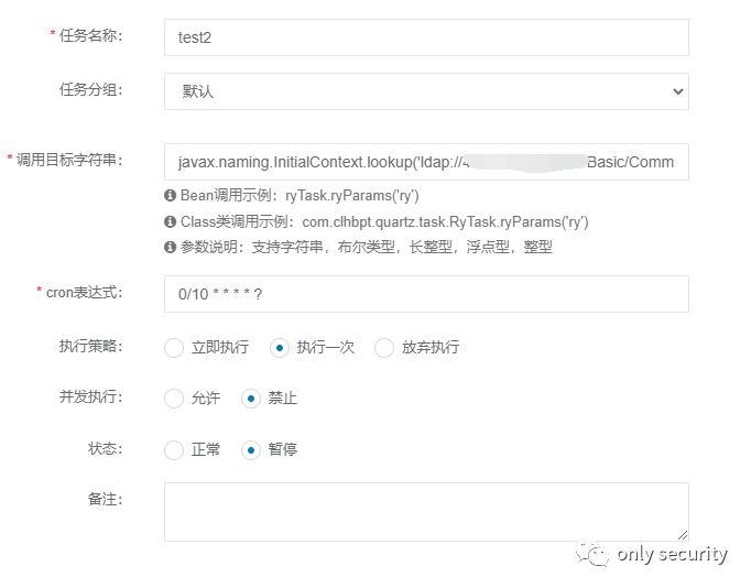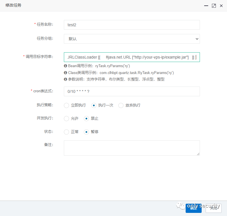 在一次日常的渗透测试任务中,进入了若依的后台,其中存在定时任务命令执行漏洞,但是无法使用http远程加载类执行命令,也无法注入内存马。