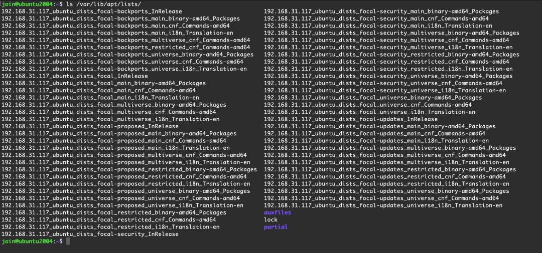 deb http://192.168.31.117/ubuntu focal main restricted universe multiverse deb http://192.168.31.117/ubuntu focal-security main restricted universe multiverse deb http://192.168.31.117/ubuntu focal-updates main restricted universe multiverse deb http://192.168.31.117/ubuntu focal-proposed main restricted universe multiverse deb http://192.168.31.117/ubuntu focal-backports main restricted universe multiverse