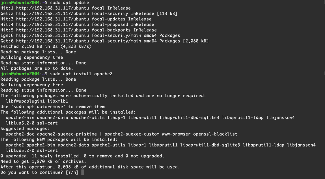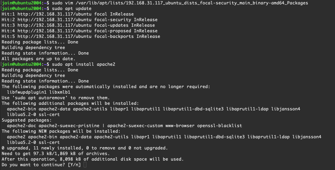 deb http://<your-server-IP>/ubuntu focal main restricted universe multiverse deb http://<your-server-IP>/ubuntu focal-security main restricted universe multiverse deb http://<your-server-IP>/ubuntu focal-updates main restricted universe multiverse deb http://<your-server-IP>/ubuntu focal-proposed main restricted universe multiverse deb http://<your-server-IP>/ubuntu focal-backports main restricted universe multiverse