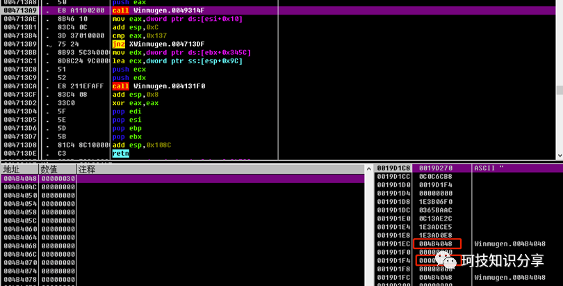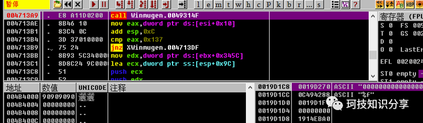 重新断点在0x4713A9,发现call之前已经完成压栈。