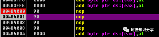 此时断点4B4000,F9后发现NOP被成功执行。