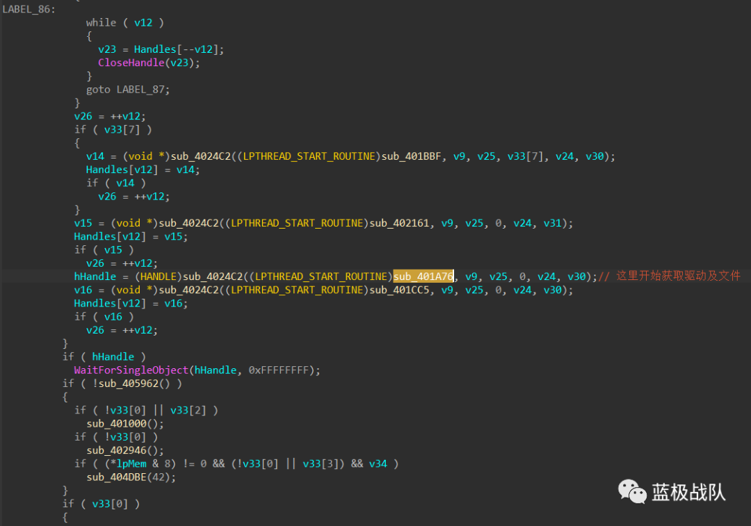 0x23 在LABEL_86块下,直接调用sub_401A76开始遍历驱动及文件
