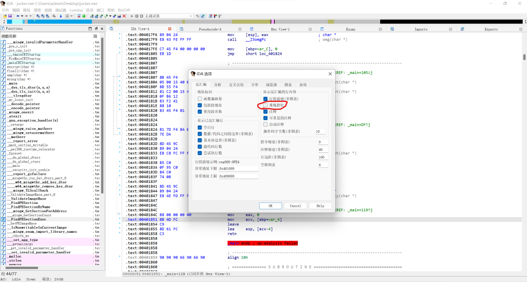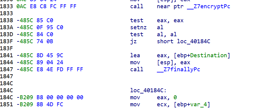 图中调用了一个函数,但栈指针不一样。在这两个位置按alt+k,都改成0x00