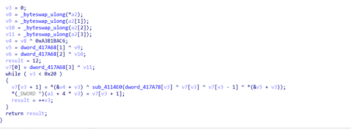 要运算v17[v6] = byte_416050[(unsigned __int8)(v8 + v13)] ^ v16[v5 - 1];