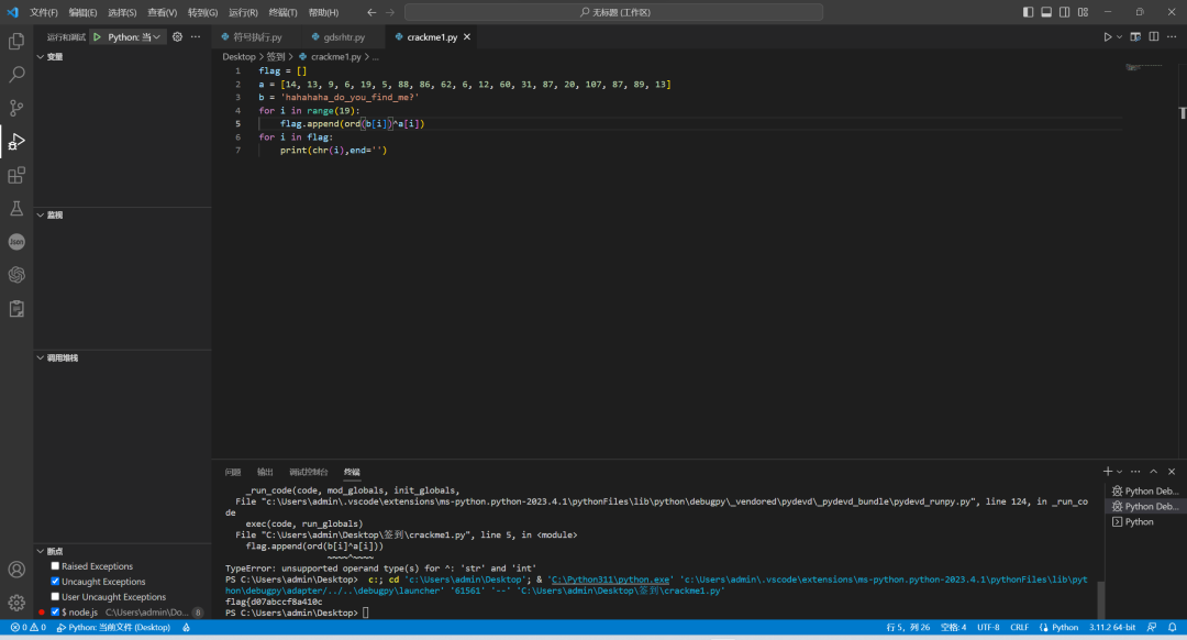 flag+=chr(a[i]^0x20-i-5)#少了前五位,猜测是flag{