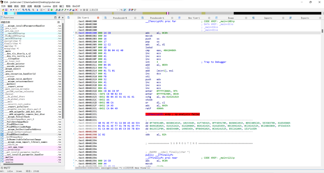 还剩encrypt这一个函数,正确的flag应该在这里,但是不能F5
