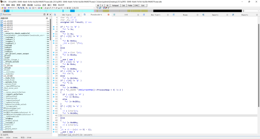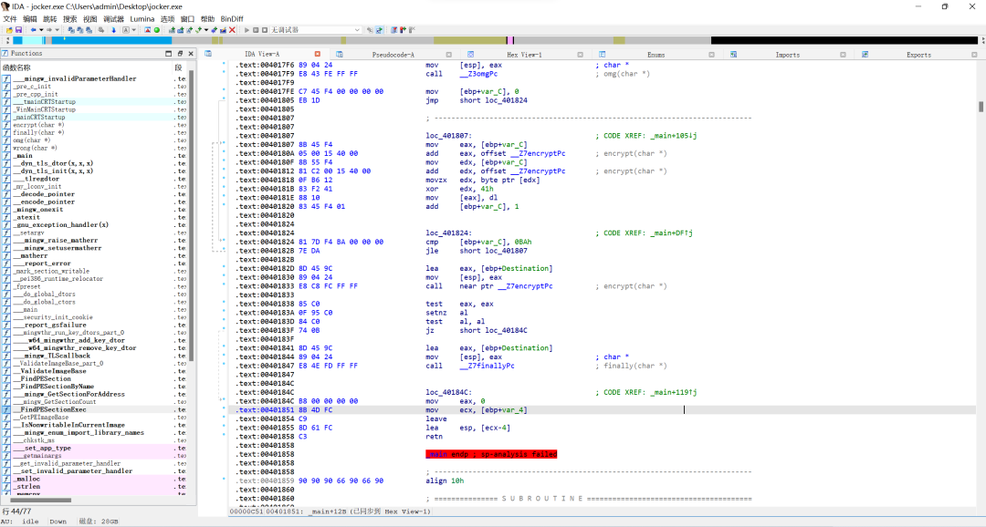 print(flag)Ida打开,main函数里没东西,通过字符串找加密