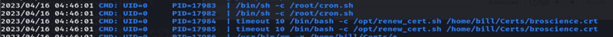 将pspy64通过上传至靶机,并运行pspy64对系统进行信息收集。发现定时计划任务中存在root权限执行的/opt/renew_cert.sh。