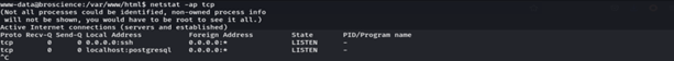 netstat -ap tcp使用db_connect.php中的凭据成功进入postgresql数据库。