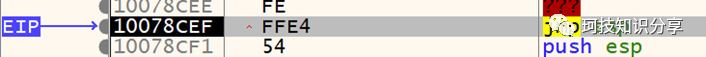跟我们之前用mona找到的1005FB9D(call esp)效果一样都是进栈执行。