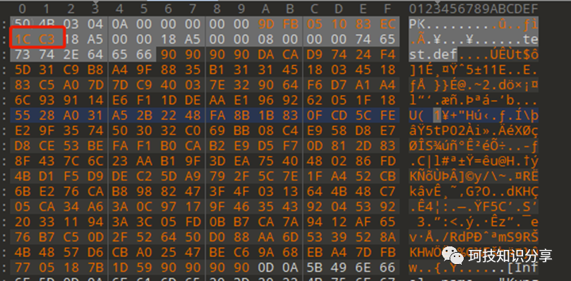 那么如何执行shellcode呢?因为zip模板限制,接下来CRC等空间显然不够填充所有的shellcode。我们可以学习Reboot的思路,跳转到一个存储test.def自己文本的地方。而这个地方就在栈上。