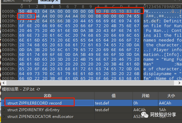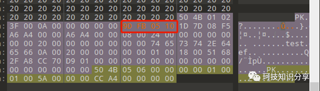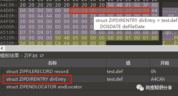 血神的则是直接ret到10078D87(也是jmp esp),血神压缩文件符合010Editor的zip模板,比较方便我们定位溢出点在哪里,是deFileTime+deFileDate。