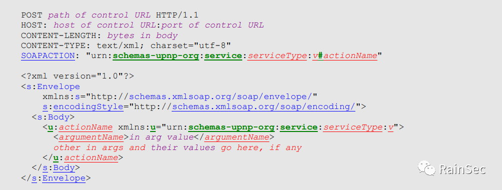 根据一般的UPnP协议,其提供的服务都会在.XML文件中写明,但是在www文件加下搜索firmware update相关字符串毫无结果。所以这个固件更新功能是内部API,也许其用法写在开发文档中,那么只能逆出调用该API的UPnP数据包格式。虽然是个内部API但是估计也是基于UPnP control包的格式开发的: