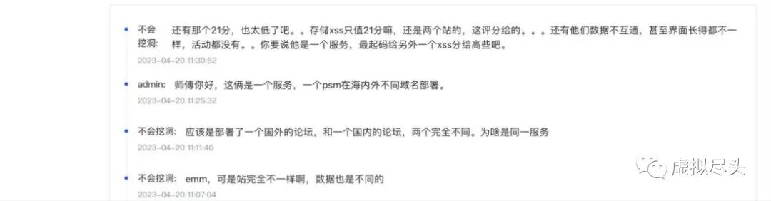 没有断章取义,直接截图发的我跟审核的原话。审核真厉害,中间惊世骇俗的话:就算rce也是中危,考虑到风险存在,给你3分买个鸡腿吃。yue了。