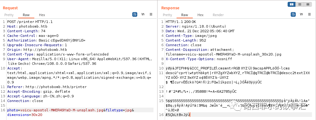 会被跳转到域名 photobomb.htb 去加入 hosts 解析
