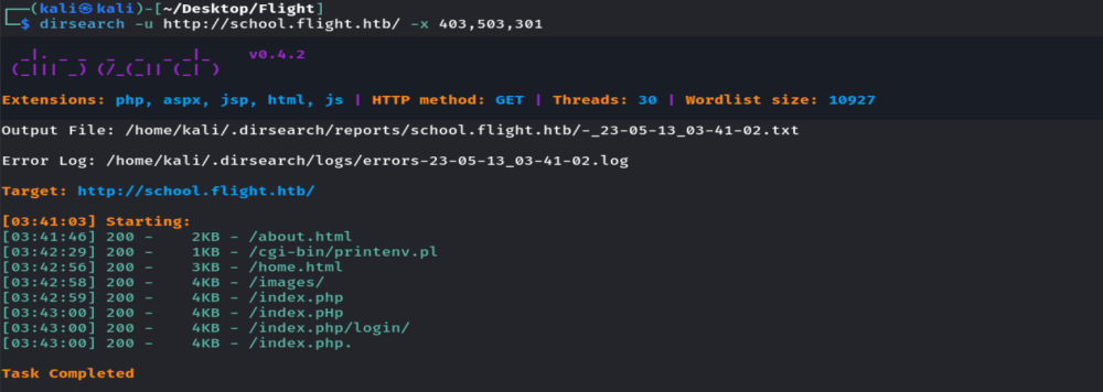 使用dirsearch对http://school.flight.htb/进行目录扫描,未发现存在有用信息。