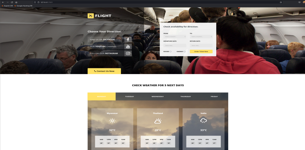 访问http://flight.htb/#页面,并观察响应包,获取Apache、OpenSSL、PHP版本信息。点击Web页面,似乎该页面为静态页面,无任何可以交互的功能点。