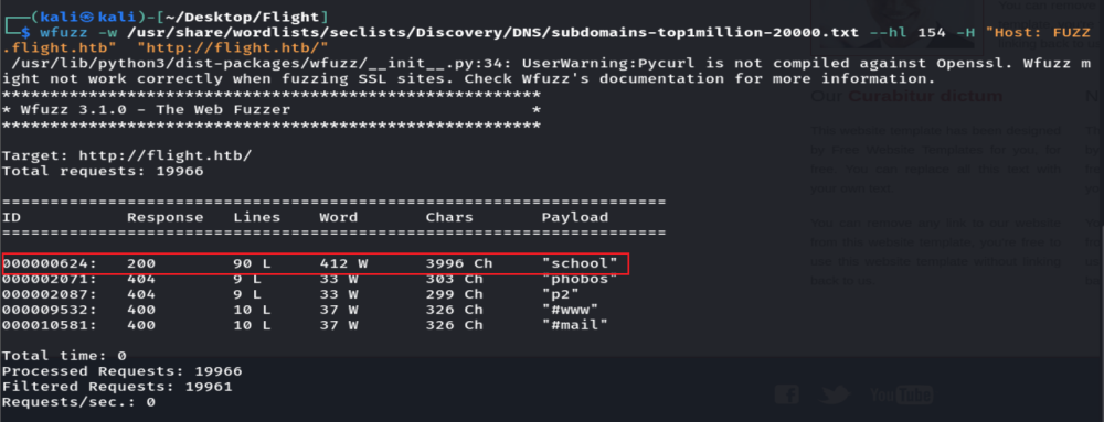 wfuzz -w /usr/share/wordlists/seclists/Discovery/DNS/subdomains-top1million-20000.txt --hl 154 -H "Host: FUZZ.flight.htb" "http://flight.htb/"将school.flight.htb子域名添加至/etc/hosts文件。