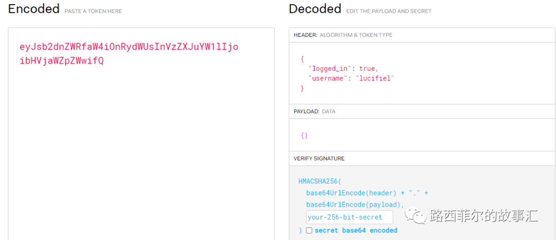[*] Session decodes to: {'logged_in': True, 'username''lucifiel'}