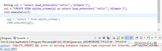 但这种控制了jdbc,还要控制sql语句的环境显然并不理想。如果jdbc就可以执行load_extension()就好了。但是sqlite无法通过jdbc进行多语句或者PRAGMA的注入,所以看起来整体似乎是个非常鸡肋的漏洞。