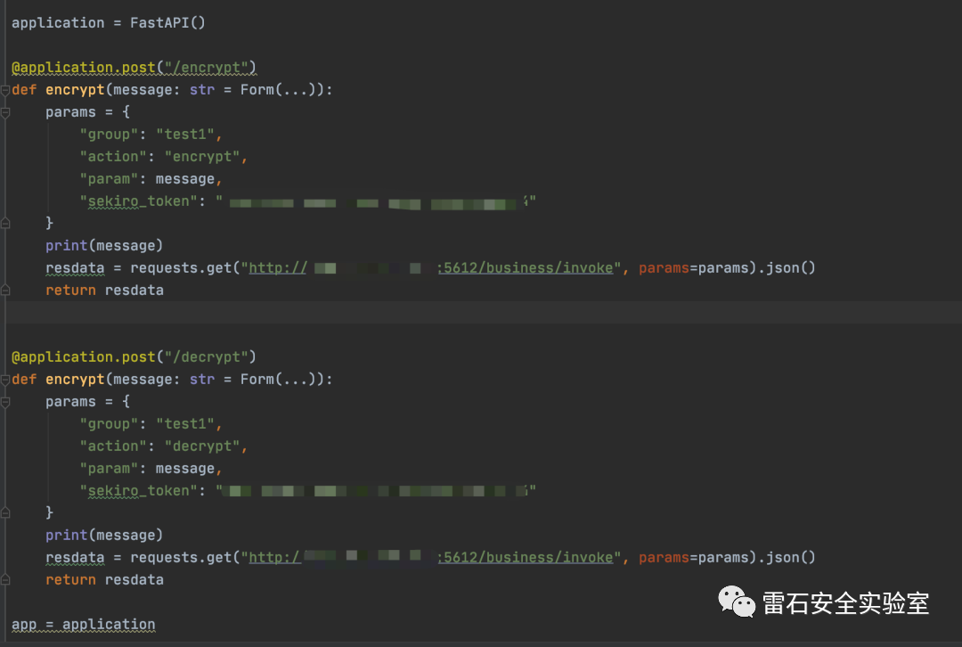 此时再编写一个fastapi,简单起一个web,用于调用sekiro的rpc接口,其中的sekiro_token在登录sekiro的web端后有,复制过来即可:
