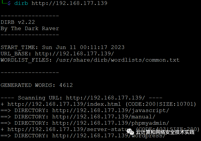 有web服务,做一下目录暴破,dirb http://192.168.177.139,