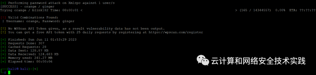 wpscan --url http://192.168.177.139/wordpress -U orange -P /usr/share/wordlists/rockyou.txt,