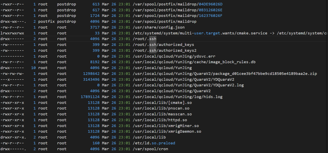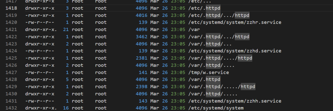 find / -newermt '2023-03-26' ! -newermt '2023-03-27' |grep -v "docker" |grep -v "containerd" |xargs ls -ldtr这次舒服多了,一条条记录来吧【记录太多,直接放在本地查看】