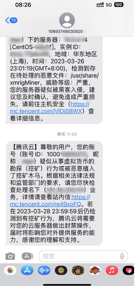 腾讯发来了短信告警,说有 xmrig 挖矿,最开始没注意,以为是我放在服务器上的frp 导致的误报,到了工位后详细看了下告警内容,发现不是frp对应的安装 路径,坏了,肯定被黑了,登上服务器紧急处理