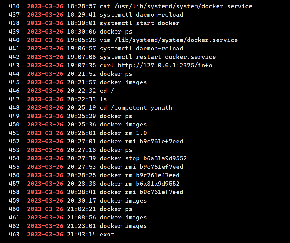 2023-03-26 23:01:14.372920119 +0800接下来看下这段时间前后的历史命令信息