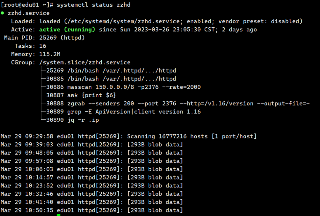 2023-03-26 23:05:00 启动httpd 服务,其中包含各个扫描器等,循环往复,再去扫描其它机器的端口