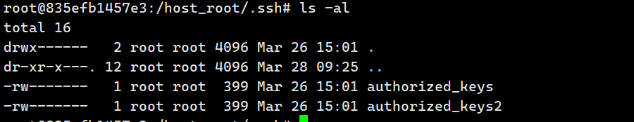 同时我们也可以在容器中看到黑客已经在靶机中写好的公钥文件
