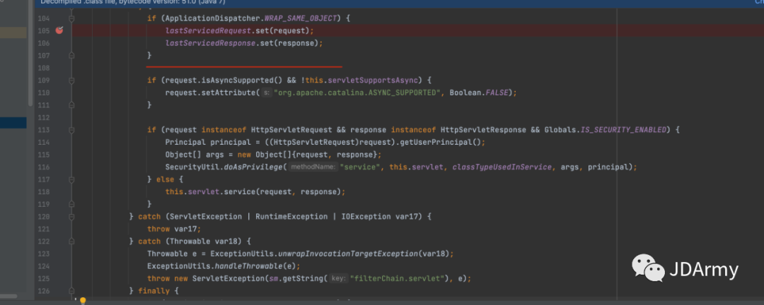 Field lastServicedRequestField = ApplicationFilterChain.class.getDeclaredField("lastServicedRequest");