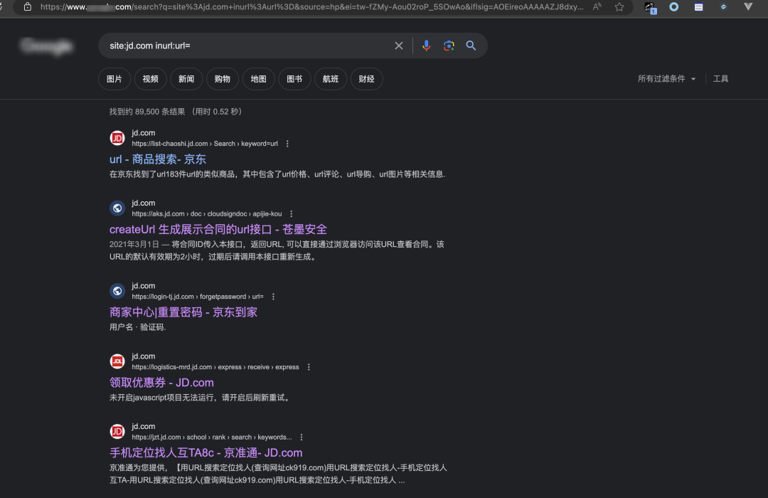 这漏洞也算是可遇不可求了,我使用搜索引擎配合查找 site:jd.com inurl:url=、site:jd.com inurl:redirect=