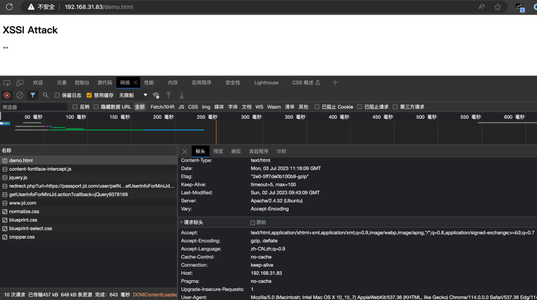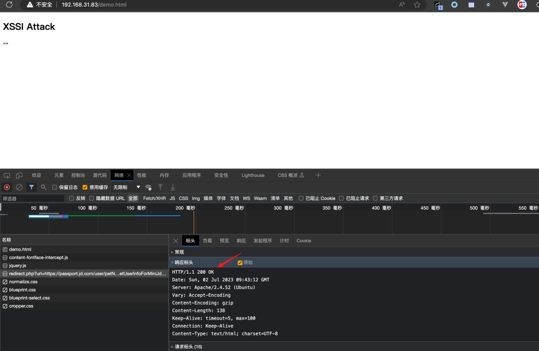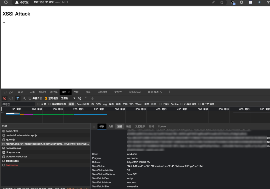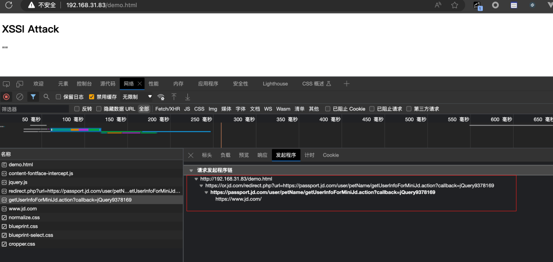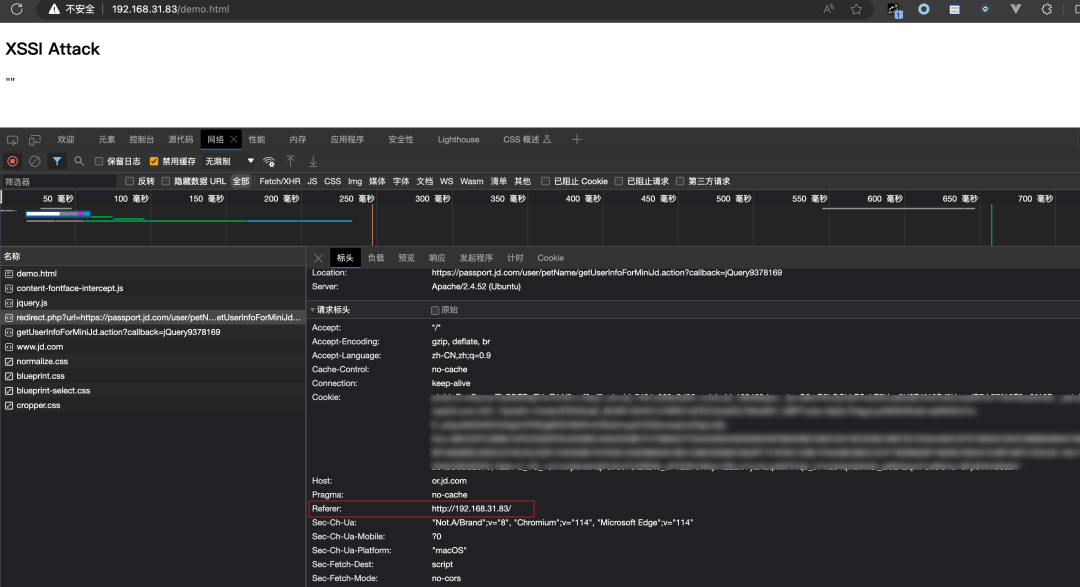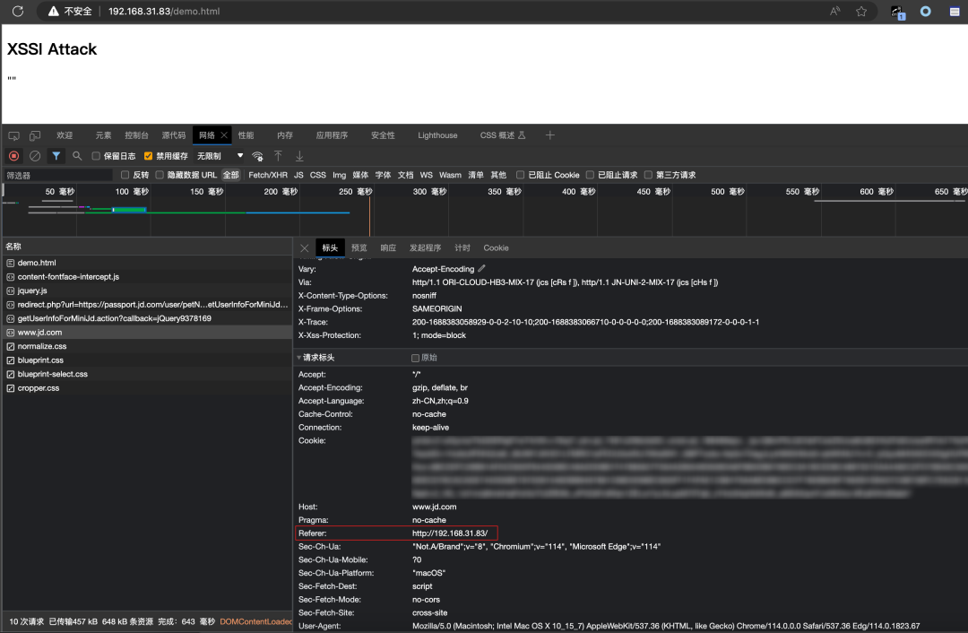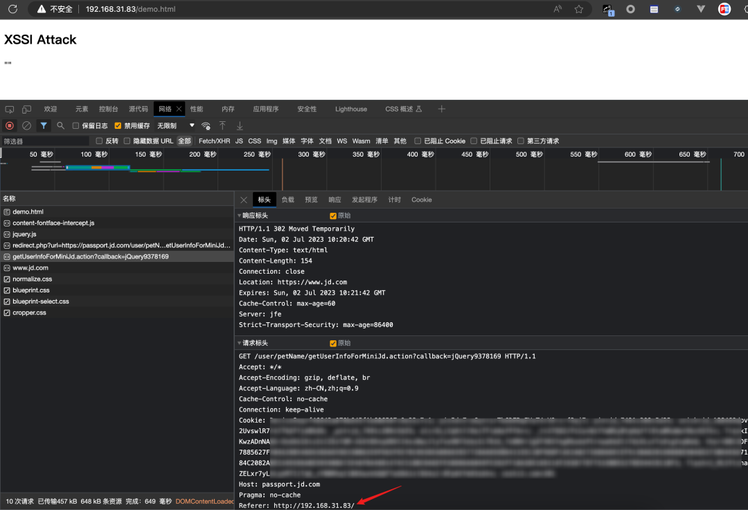 这回有请求了,甚至还带了 referer ,但是并不是 or.jd.com ,而是 192.168.31.83 ,也就是 evil 服务器