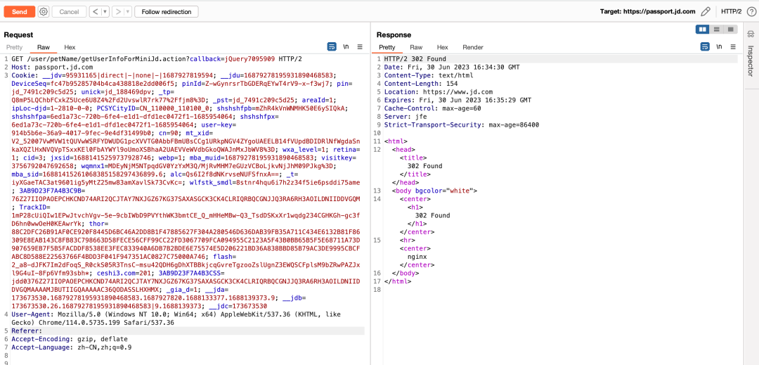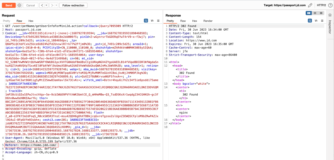 访问 passport.jd.com 的敏感信息接口 无 referer