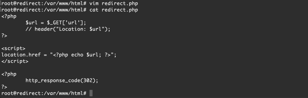 我们修改 redirect.php ,仅留下 Location 重定向的代码