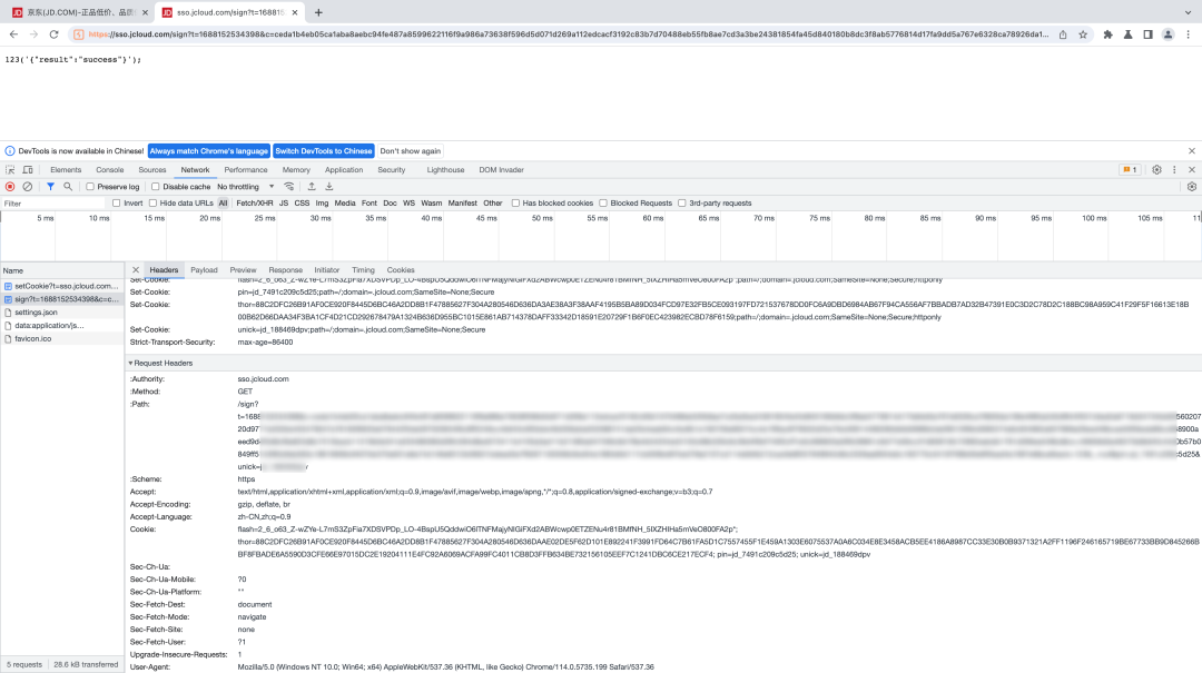 如果已经登录了的情况,会直接跳转,这岂不是完美,抱着这个想法,我找到了是京东子域名的SSO