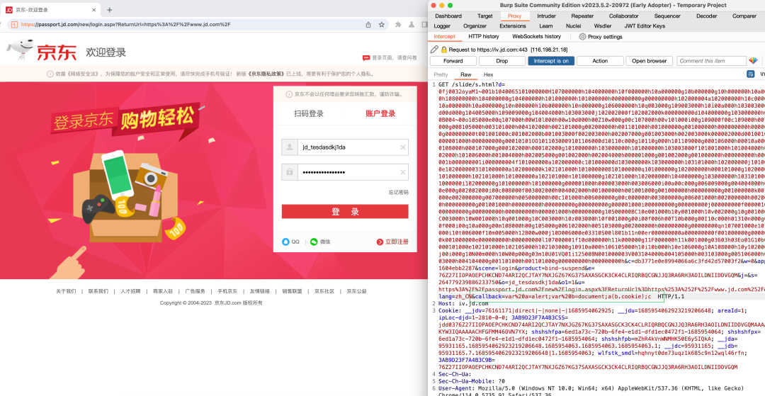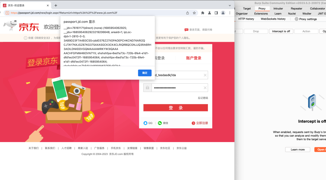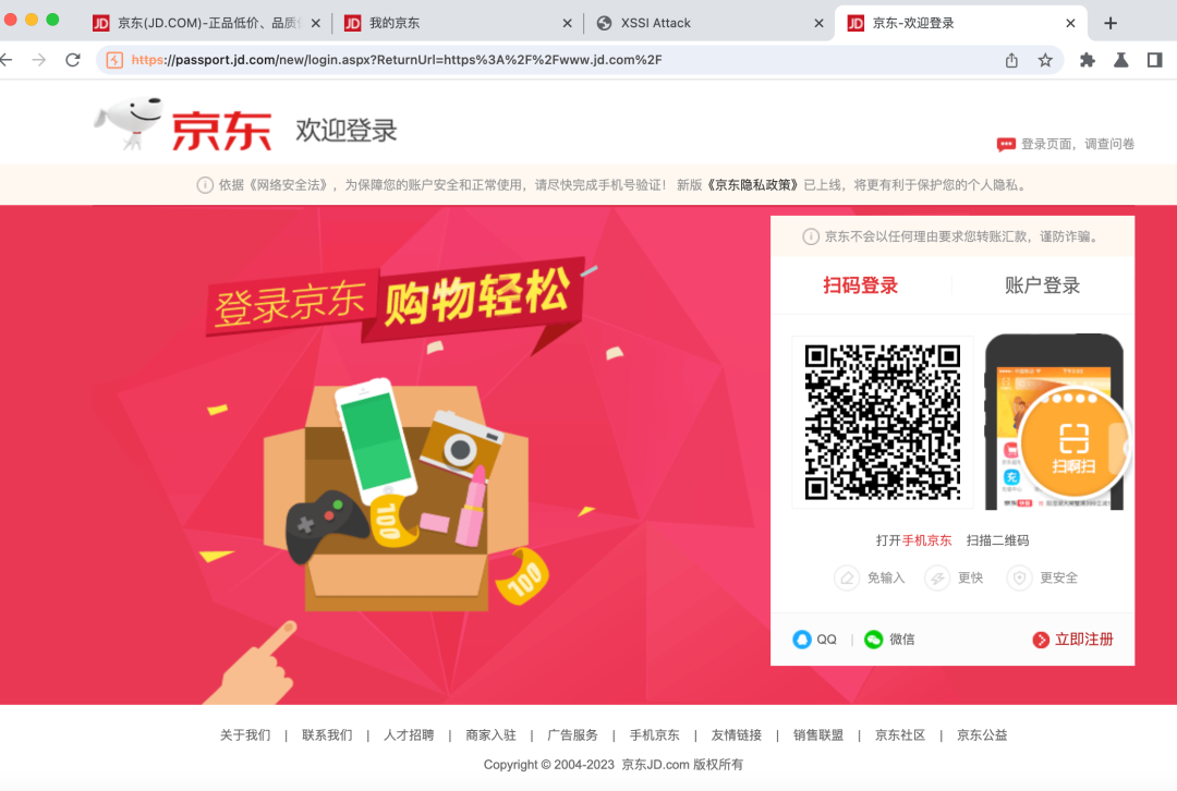 登录京东账户后,模拟受害者访问放置于子域名的恶意页面