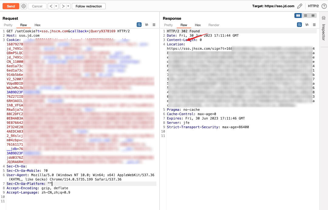 这个时候我就想到,如果京东任意的子域名有一个重定向功能,帮我们把敏感 URL 过一遍,这样有效的 referer 头不就来了嘛!也就是说,找一个 Open Redirect 漏洞配合 XSSI 漏洞,简直天作之合有没有!