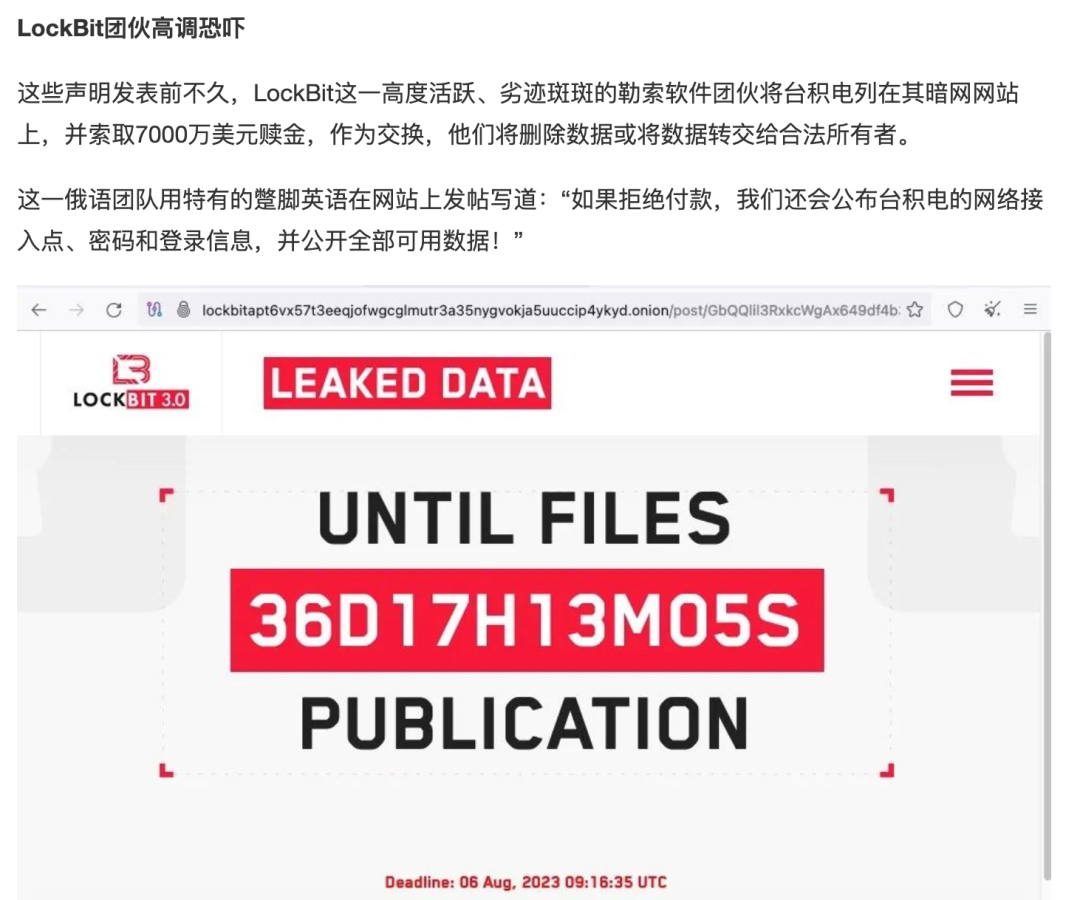 有关Linux内核中新发现的安全漏洞的详细信息已经浮出水面,该漏洞可能允许用户在目标主机上获得更高的权限。 *若出现二维码无法扫描或无法跳转等情况,可复制以下链接到浏览器查看原文https://www.t00ls.com/articles-69812.html4.台积电遭遇天价数据勒索:硬件供应商被黑,泄露少数内部数据