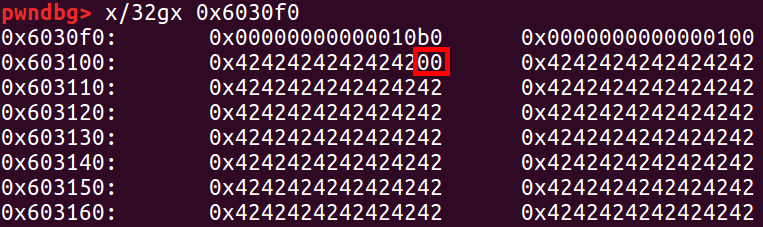 printf("b.size: %#lx\n", *b_size_ptr); // 覆盖后:b.size = 0x100(覆盖了末尾的1)