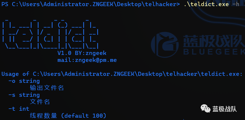 _ _ _ _ _| |_ ___| | __| (_) ___| |_| __/ _ \ |/ _ | |/ __| __|| || __/ | (_| | | (__| |_\__\___|_|\____|_|\___|\__|V1.0 BY:zngeekmail:[email protected]-o string输出文件名-s string文件名-t int线程数量 (default 100)